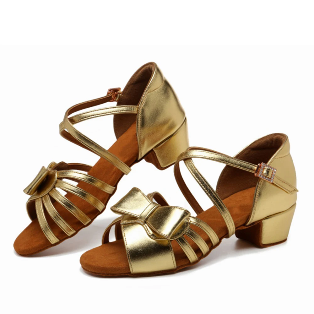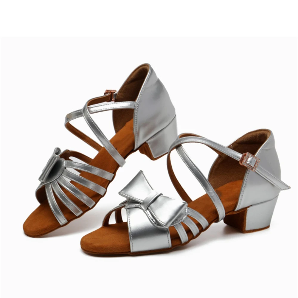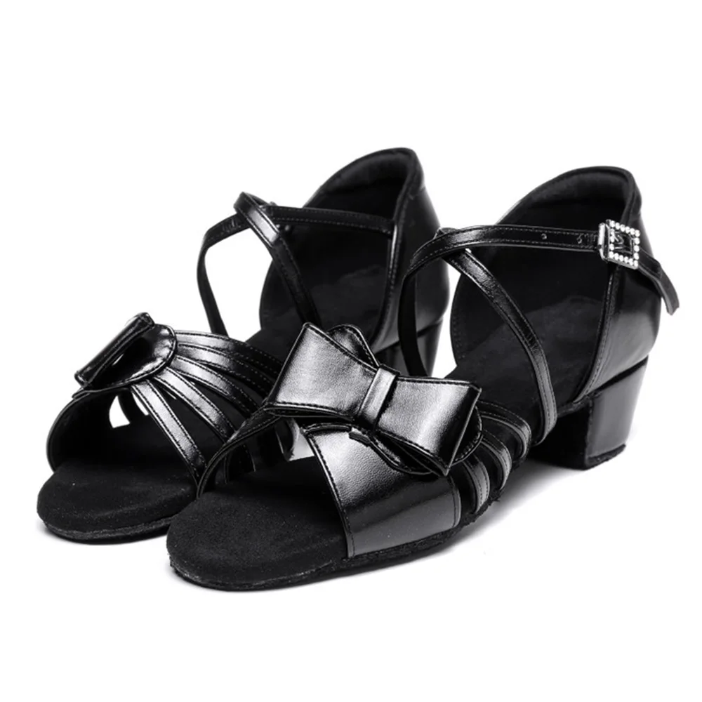 Girls Bow Latin Dance Shoes Low-Heeled Soft-Soled Salsa Dance Shoes Indoor Stage Performance Shoes
